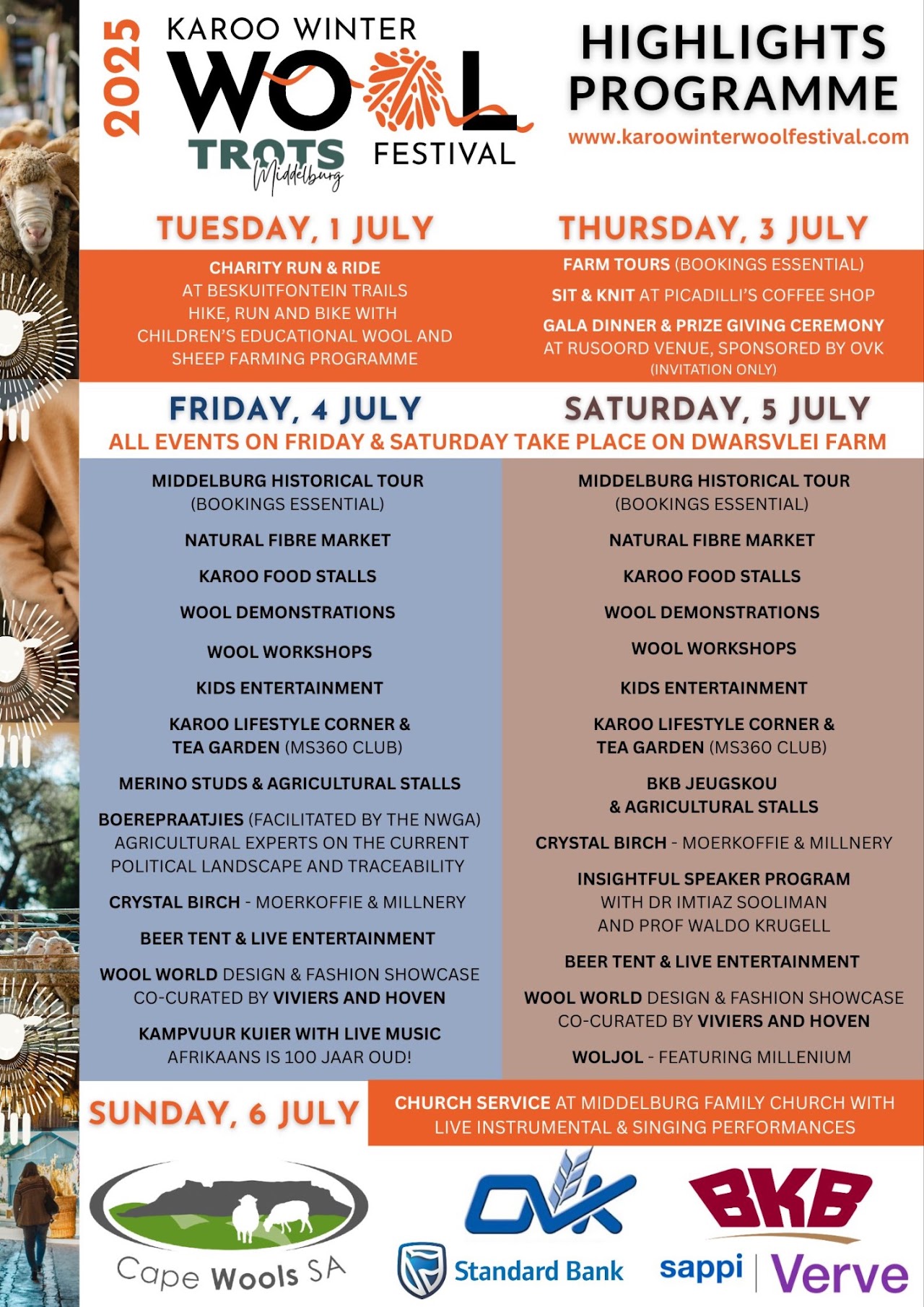 The Winter Wool Festival hosted by Middelburg Tourism will take place on Saturday the 22nd – 25th of June in and around Middelburg Karoo. An exciting range of wool exhibitions speakers and workshops lined up – so make sure to plan your winter holiday around your visit in Middelburg.